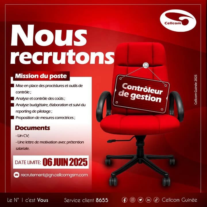 #CellcomGuinée #Recrutement #ContrôleDeGestion See less